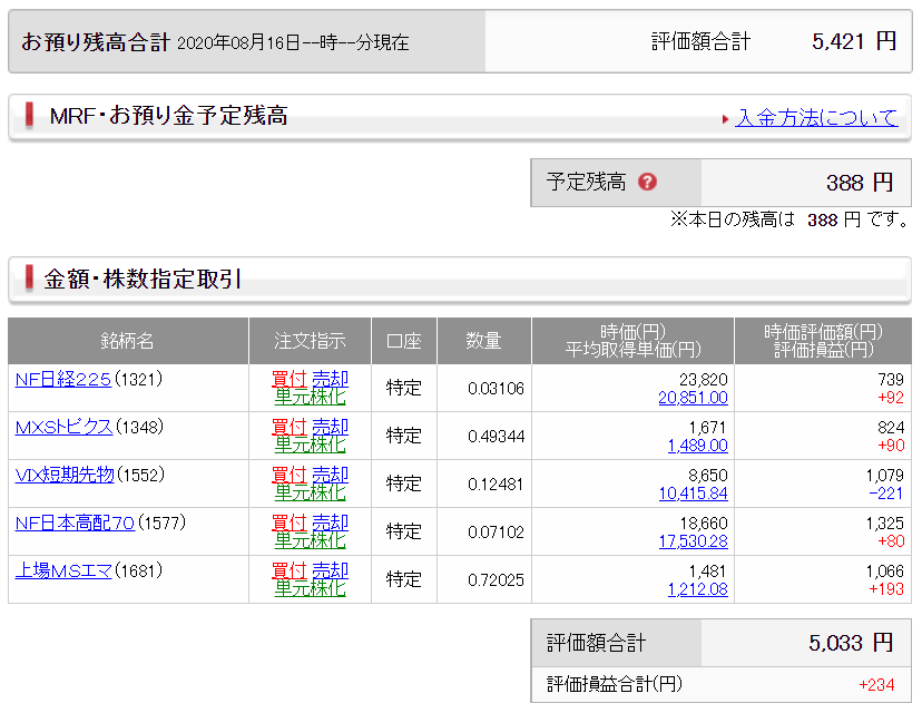 <2020年8月17日週 運用結果>