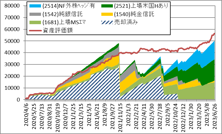 その決済で得られた資金を、評価損が出ている商品の追加購入に割り振る。