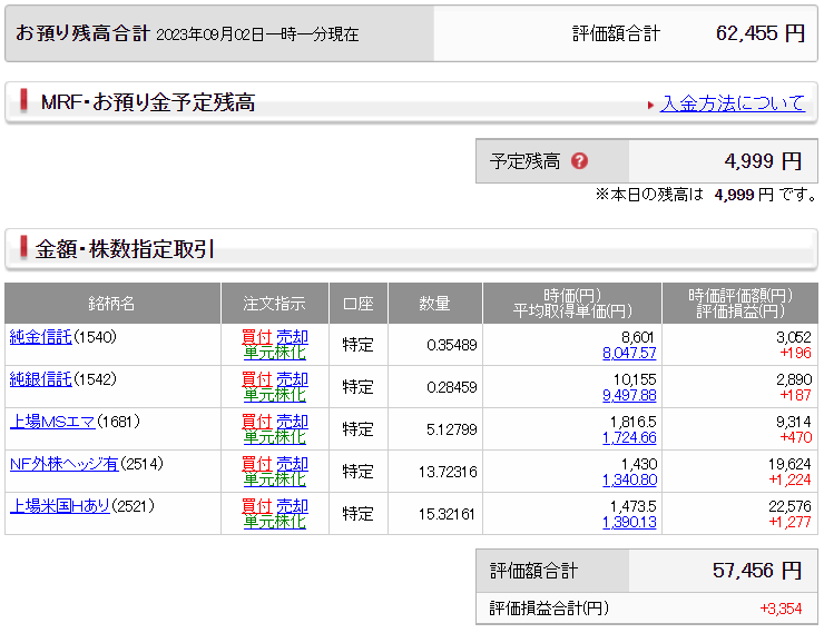※(2514)NF外株ヘ と(2521)上場米国Hあり は300ポイント単位で購入